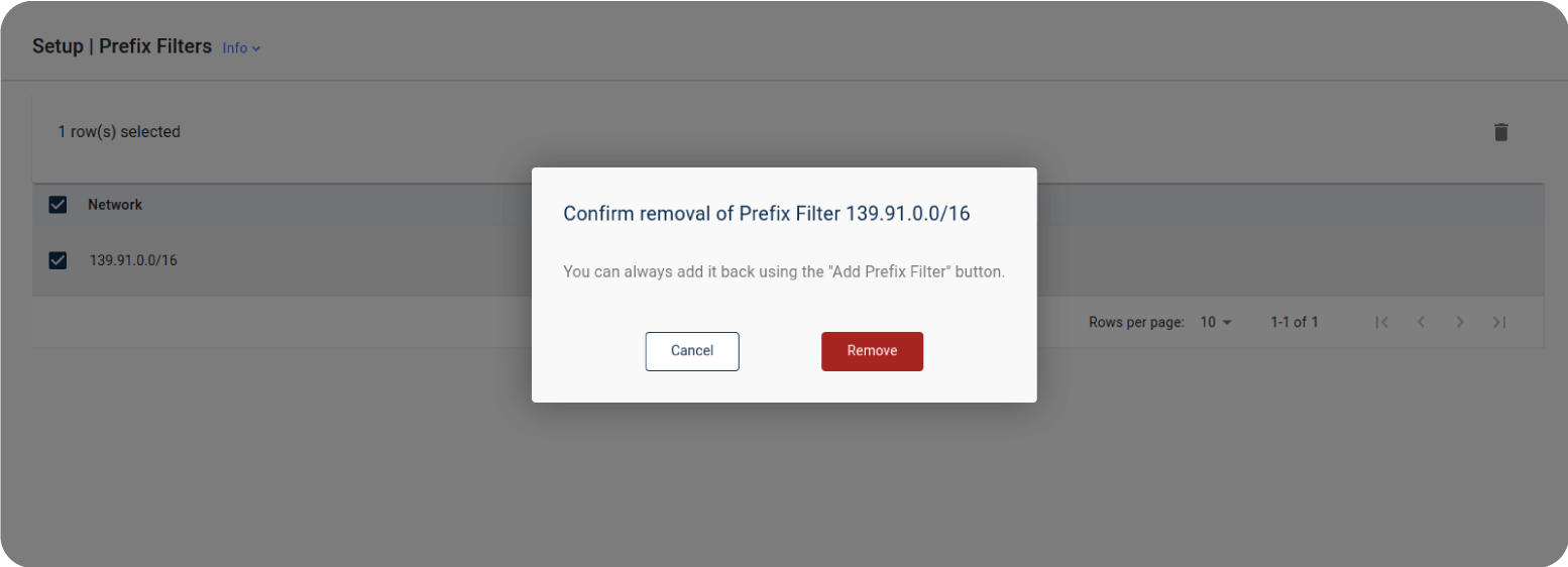 Delete an existing Prefix filter